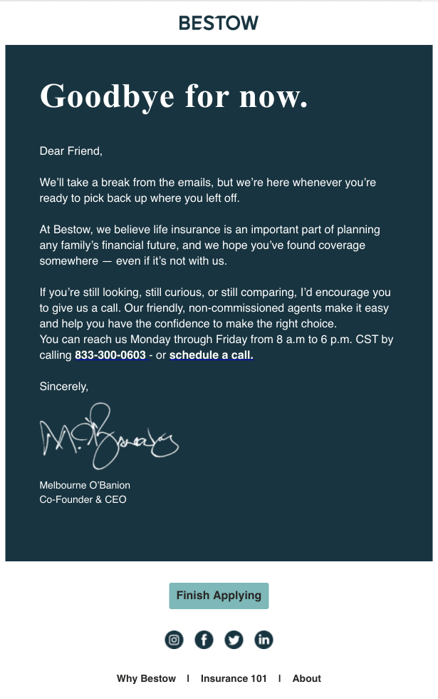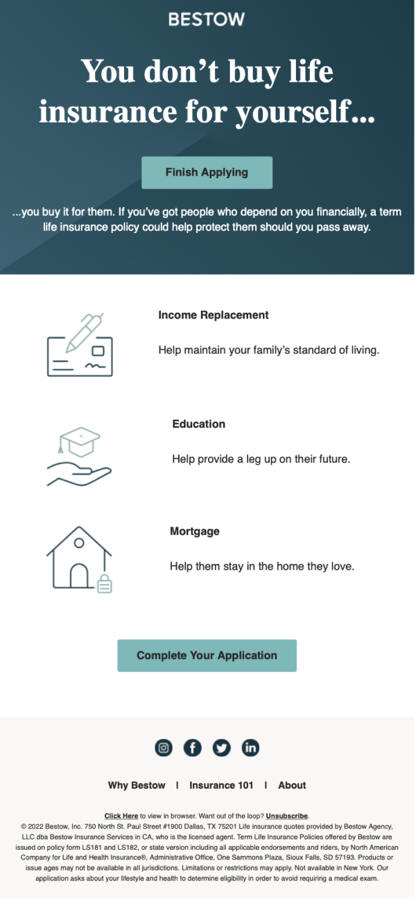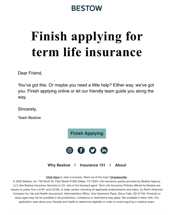 In my interview, I asked my VP of Brand at Bestow, what is one thing you would want me to tackle in the role. I’m paraphrasing, but her response: Fix our emails. And I did.